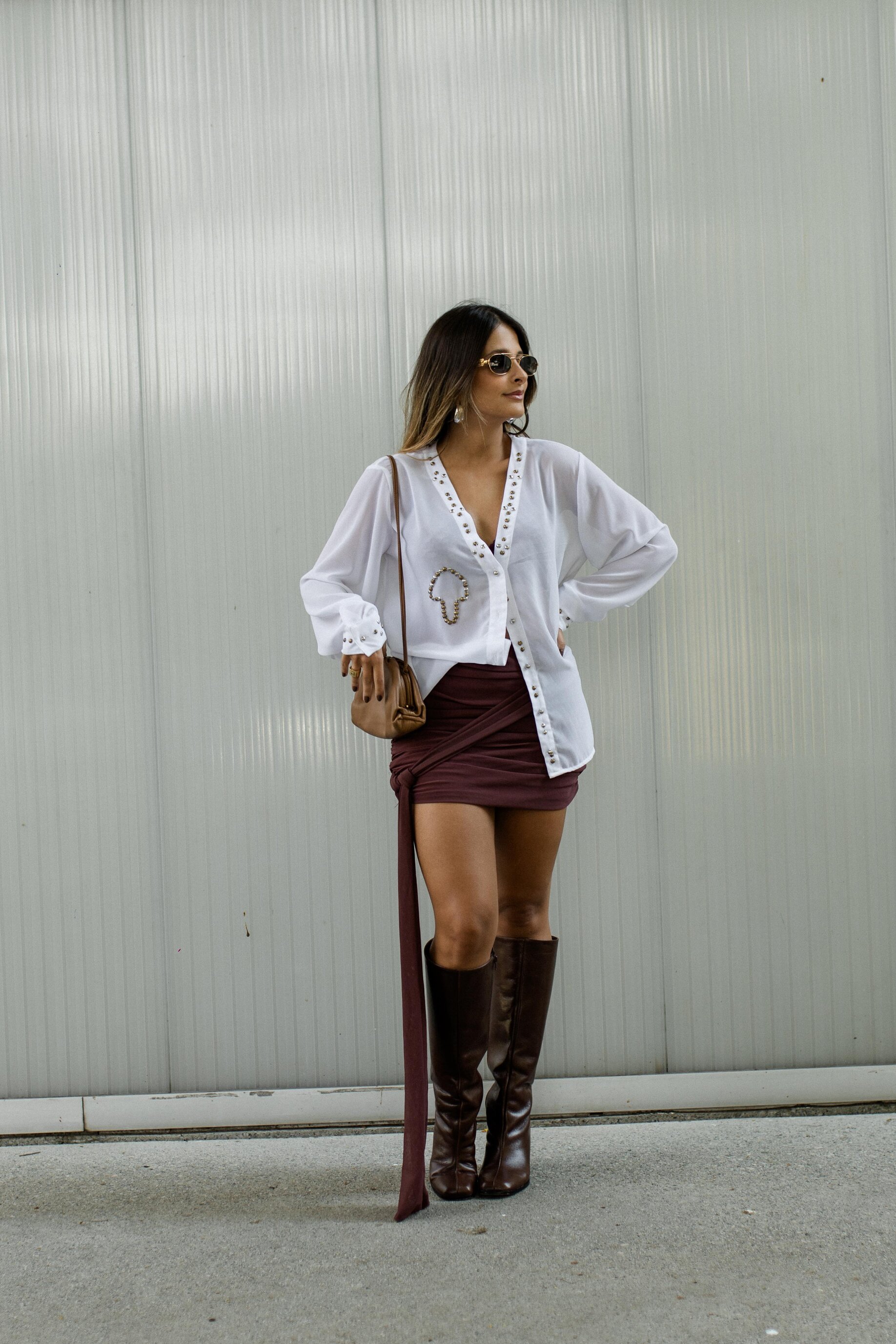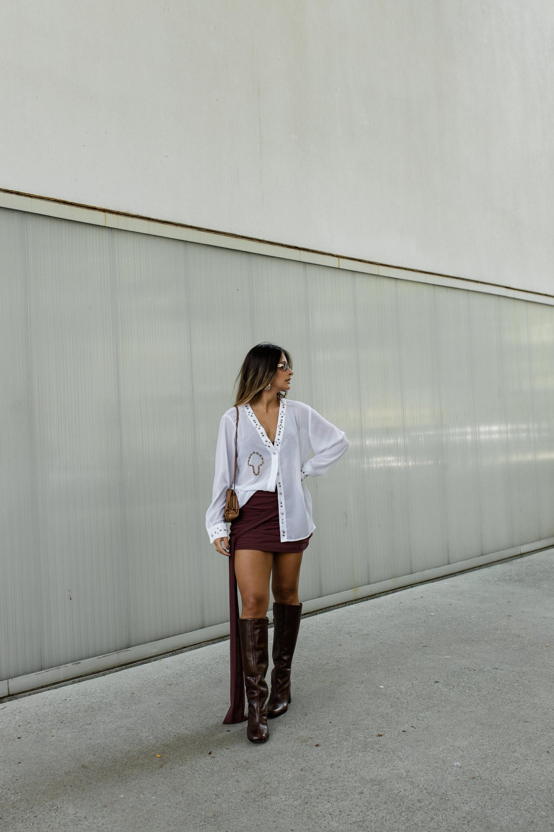 Saia Drapeada Mush Tule Bordô: confeccionada em tule de poliamida. O detalhe drapeado une-se ao transpasse elegante, proporcionando um movimento fluido e uma silhueta ajustada. Com forro de lycra de poliamida para deixar a saia mais confortável e atemporal, já que ela não fica transparente.